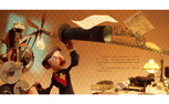 这不是一本普通的绘本。红鼻子工作室用陶土捏制的人偶、纸张剪裁的街道、布料与硬纸壳缝制的车厢,在光影里搭出了会呼吸的场景:凌乱的街景里藏着行人的匆忙,幽暗的隧道中闪着气动车厢的微光,就连书衣里都藏着从草图到成品的创作彩蛋,每一页都是一场能触摸的陶土人偶视觉盛宴。