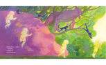 《面具马戏团》主要用色彩来叙事。画面的色彩不是普通的亮丽,而是带着精神能量、从体内喷薄出来的光彩。她的插画构图大胆,笔触直接,视觉节奏鲜明,像是把情绪、意识和记忆同时倒进画布。故事中,色彩的情绪逻辑也有更加深刻的寓意: