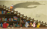 恶狼书店是故事的重要舞台。其实,我的灵感来自入秋的家。我在去她家做客时,看到了很多很多书,有些堆在一起,有些摞得高高的;书桌在窗台前,阳光和树影会落在她的书稿上。我想象中的恶狼书店应该也是这样:书本随处可见,光照充足,狼先生或许在写作时也会被阳光照得暖暖的。