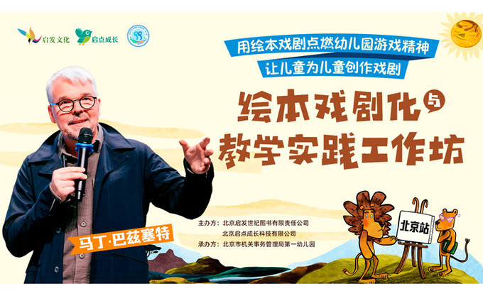 2025年10月12日,13日,10月16日,17日,我们联合北京市机关事务管理局第一幼儿园、石家庄第一实验幼儿园,为来自全国各地的70多名幼儿园园长和老师举办了两期绘本戏剧工作坊,主讲人是来自德国的著名绘本作家、剧作家、儿童剧导演马丁·巴兹塞特。